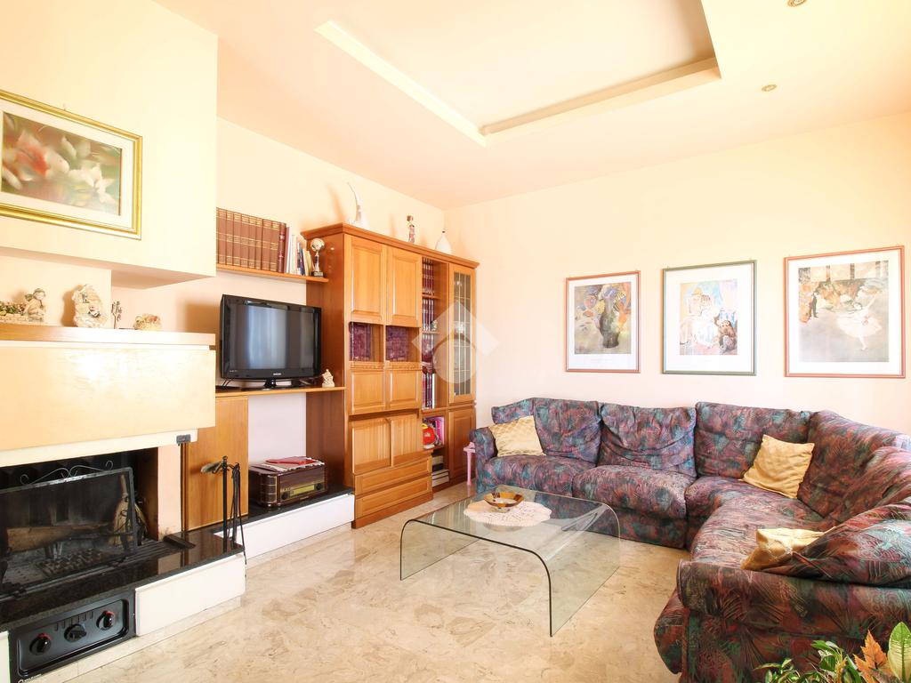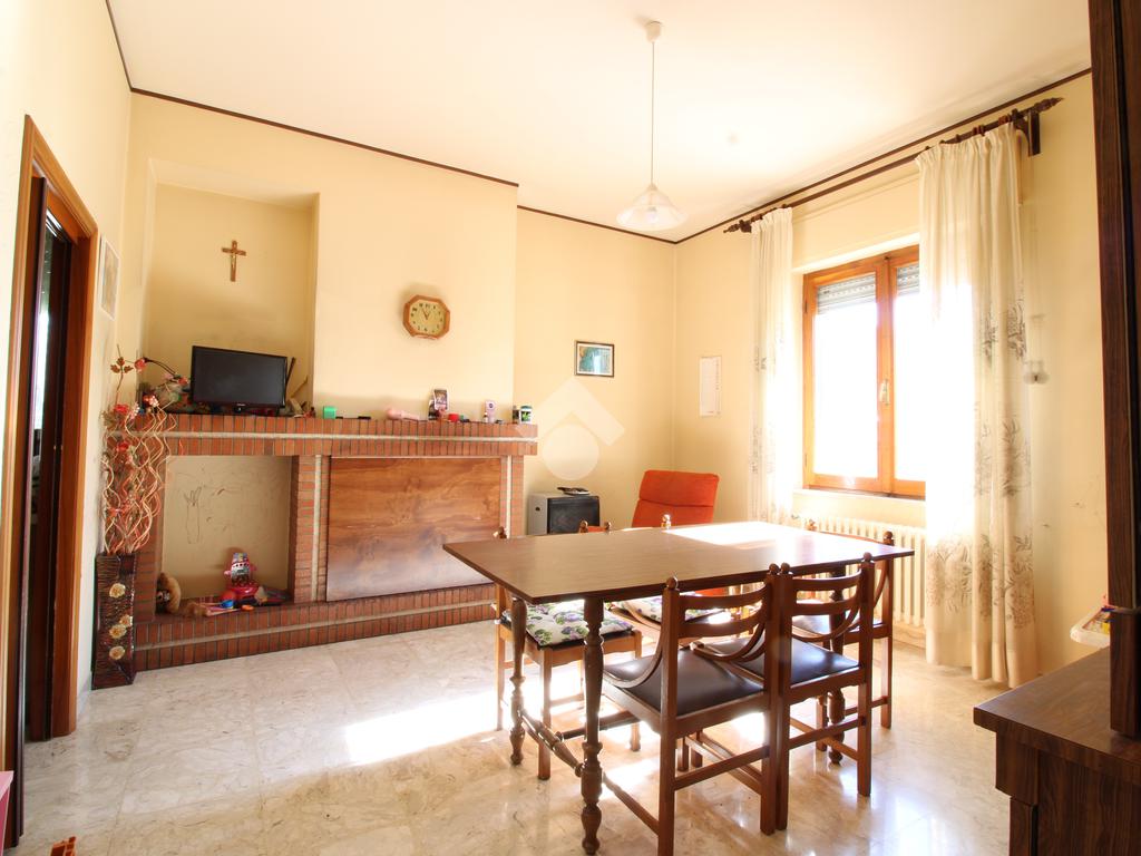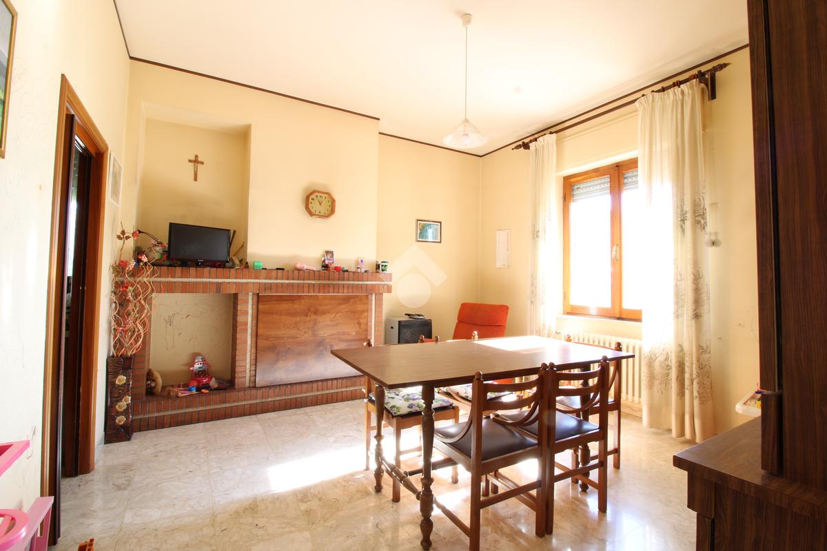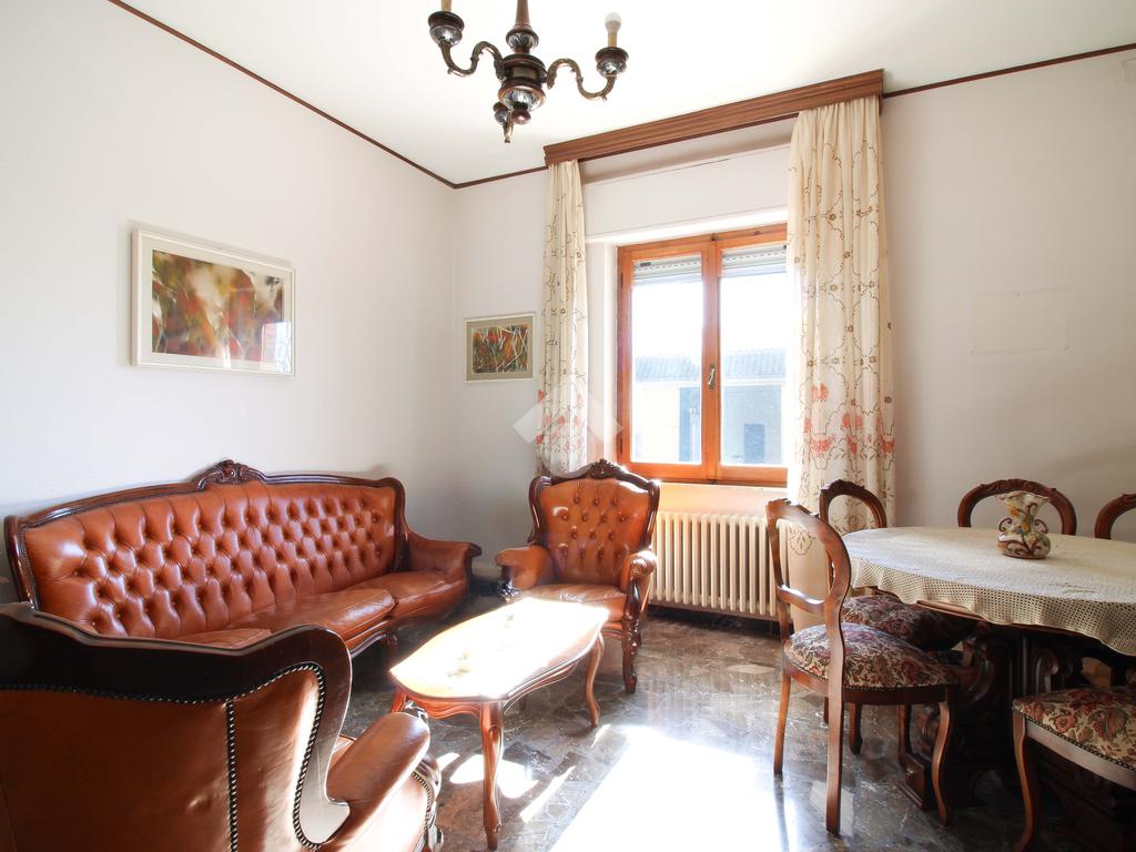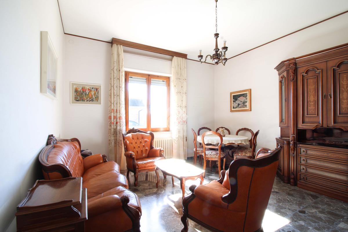 Tramite una scalinata interna o attraverso una scala esterna, accediamo al primo piano, dove troviamo un altro appartamento composto da: un ampio e luminoso soggiorno con camino e una cucina separata abitabile con accesso al balcone.