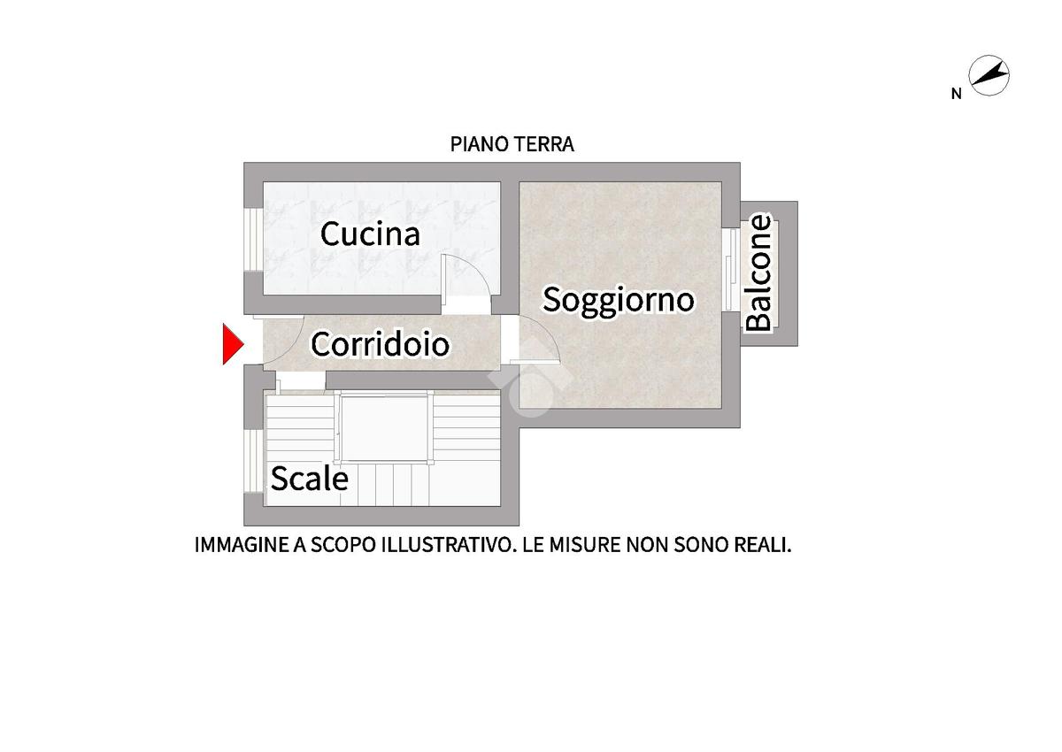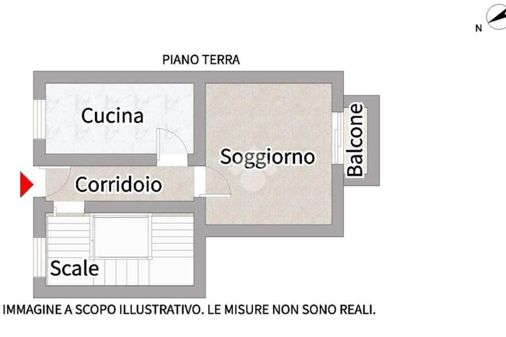 Al piano terra, attraverso un ingresso indipendente, accediamo ad un soggiorno con balcone e ad una cucina separata abitabile.