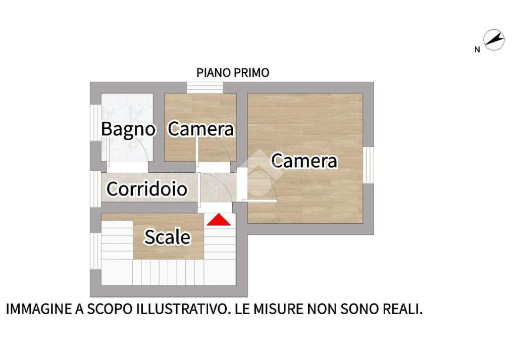 Proseguendo al primo piano, troviamo una camera da letto matrimoniale, una singola e un bagno finestrato con doccia.