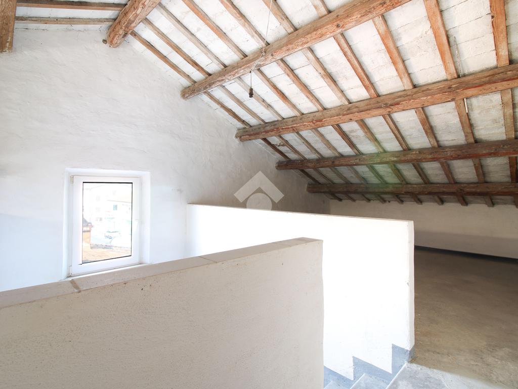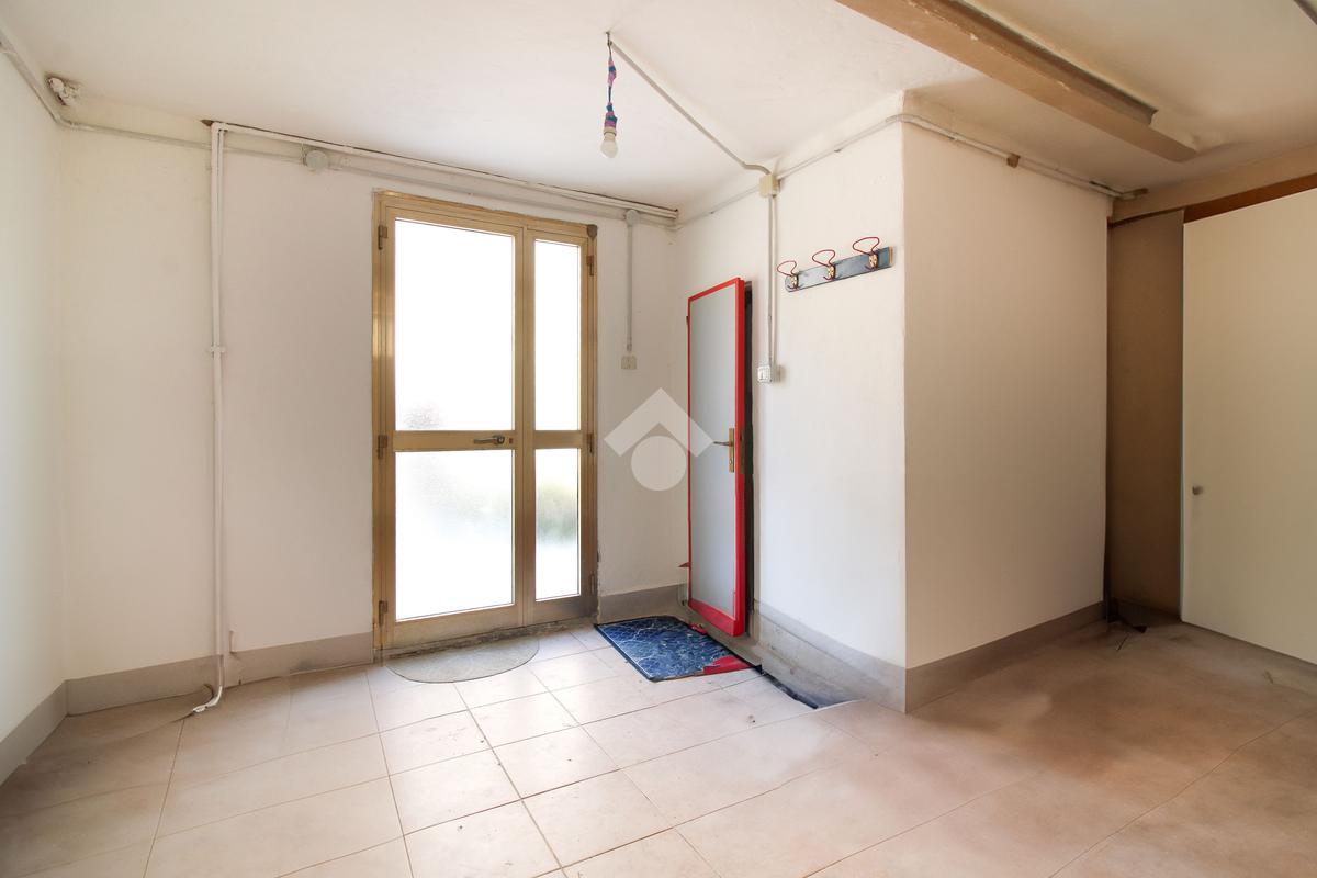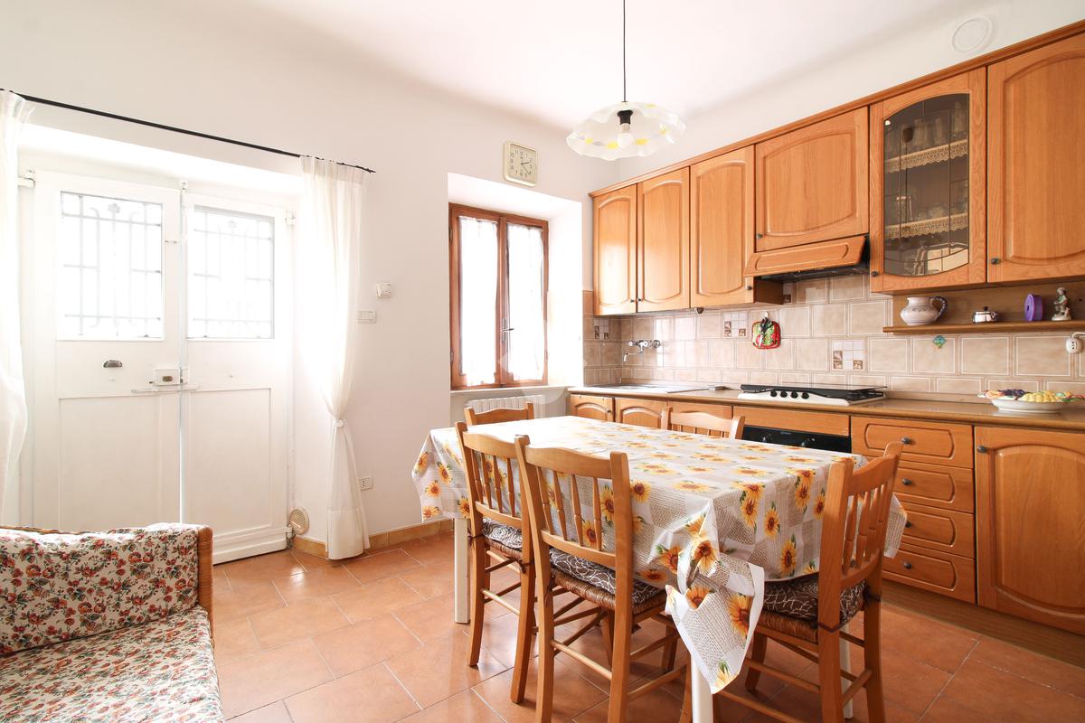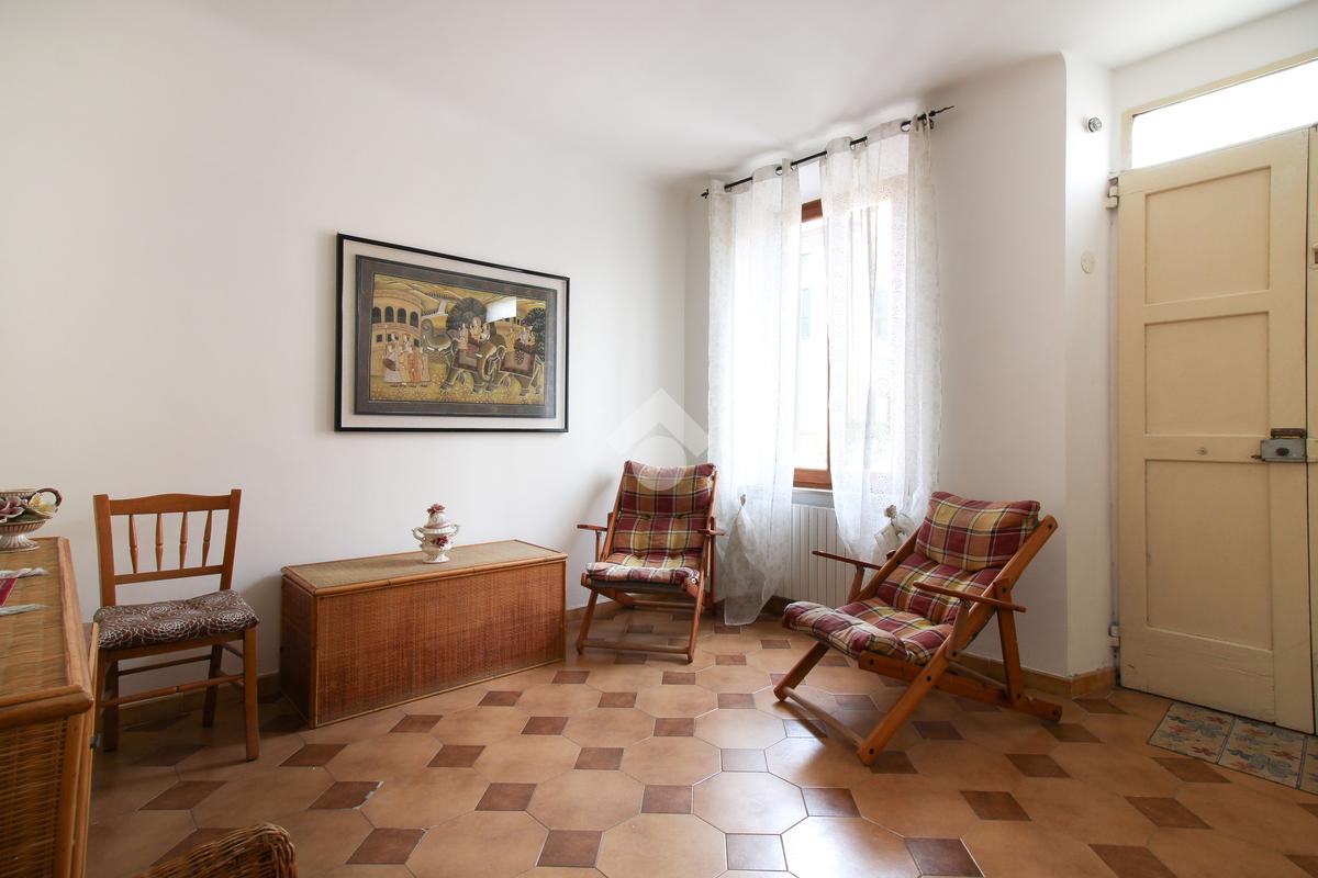 All'ingresso troviamo un soggiorno, cucina abitabile e corte privata. Dalla corte accediamo ad una rimessa con bagno di servizio.