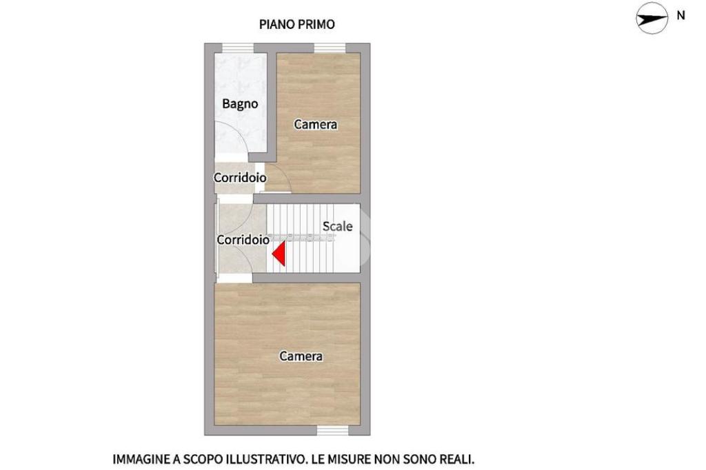 Proseguendo al primo piano attraverso delle scale interne, troviamo due camere da letto matrimoniali e un bagno finestrato con doccia.