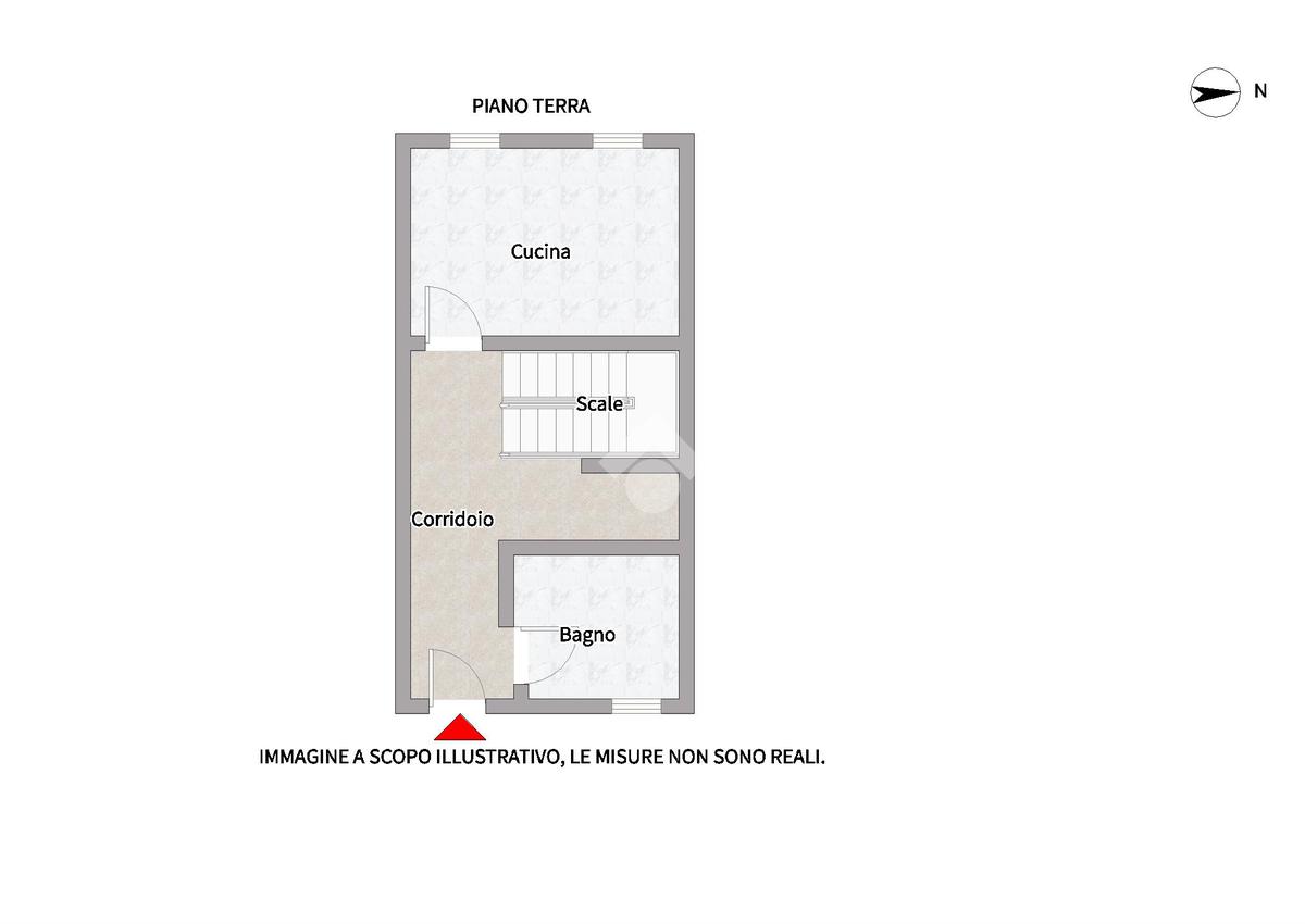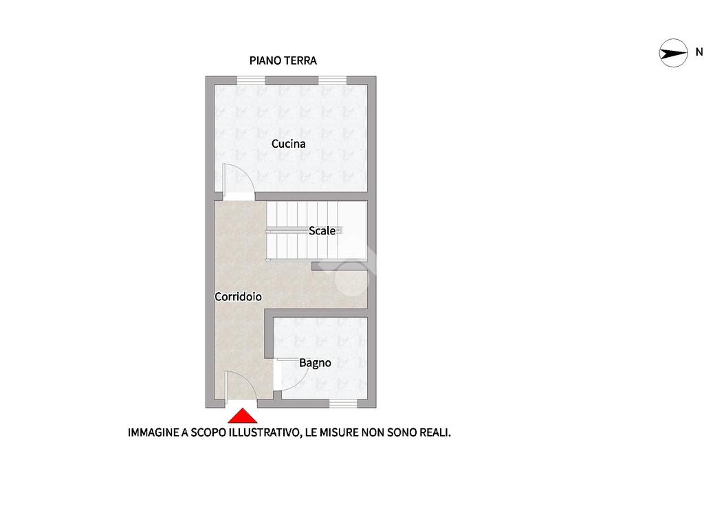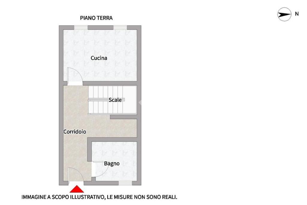 All'ingresso troviamo un corridoio dal quale accediamo alla cucina abitabile e al bagno finestrato con doccia.