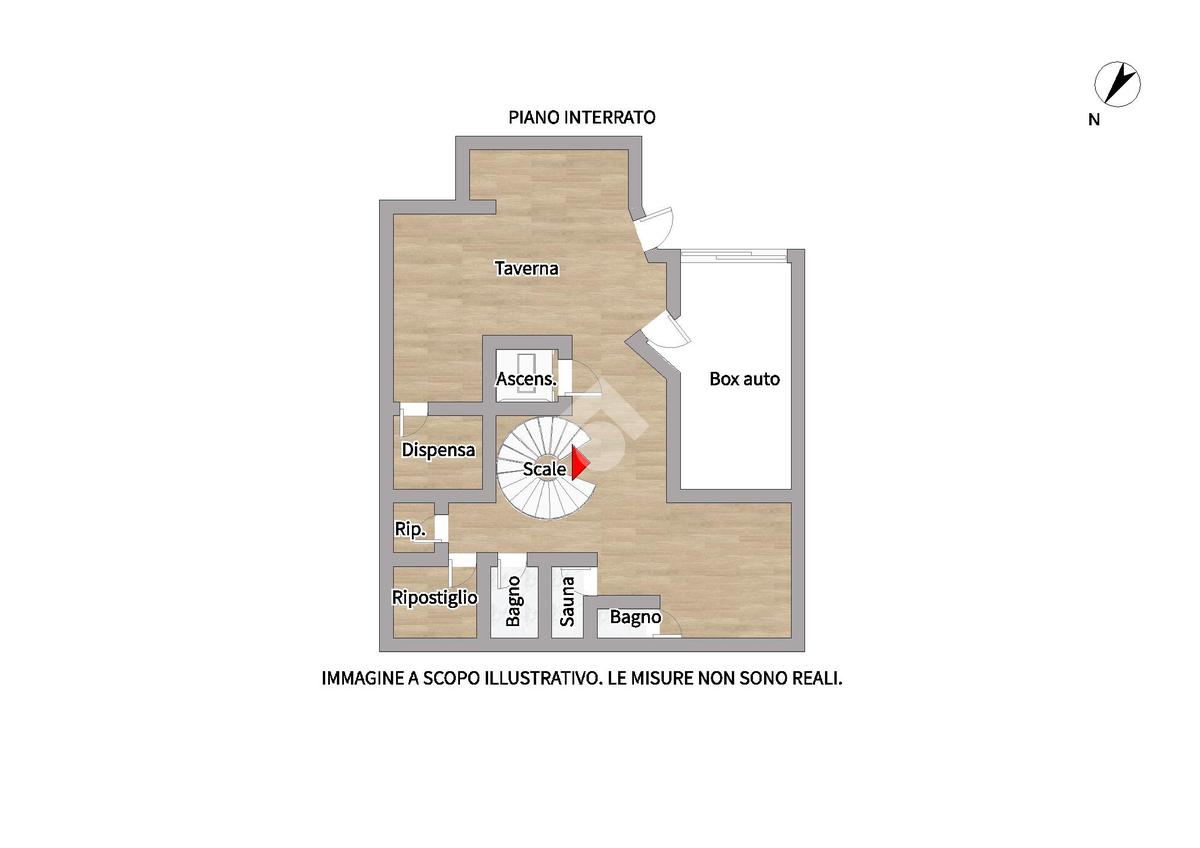 Al piano seminterrato, una taverna abitabile con cucina, dispensa e accesso alla corte privata; camera da letto con bagno e sauna, bagno di servizio, ripostiglio e box auto.