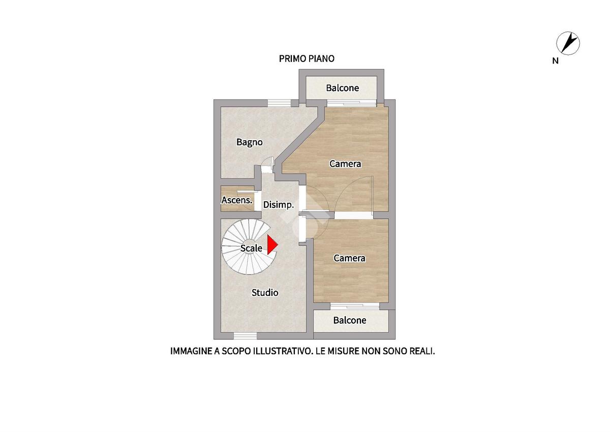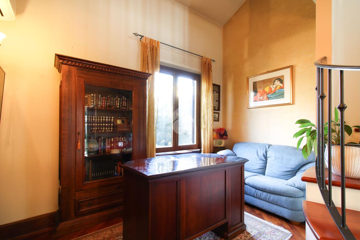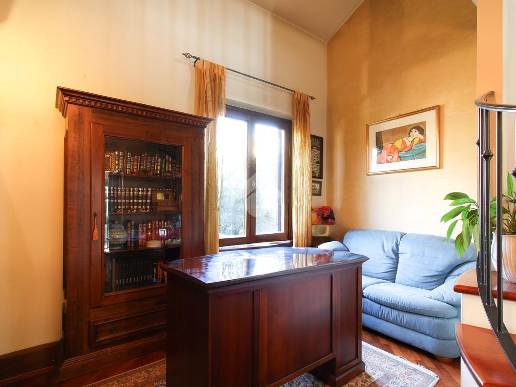 Attraverso delle scale interne accediamo al primo piano, dove troviamo due camere da letto matrimoniali con balcone, una zona studio e un bagno finestrato con vasca idromassaggio e doccia.