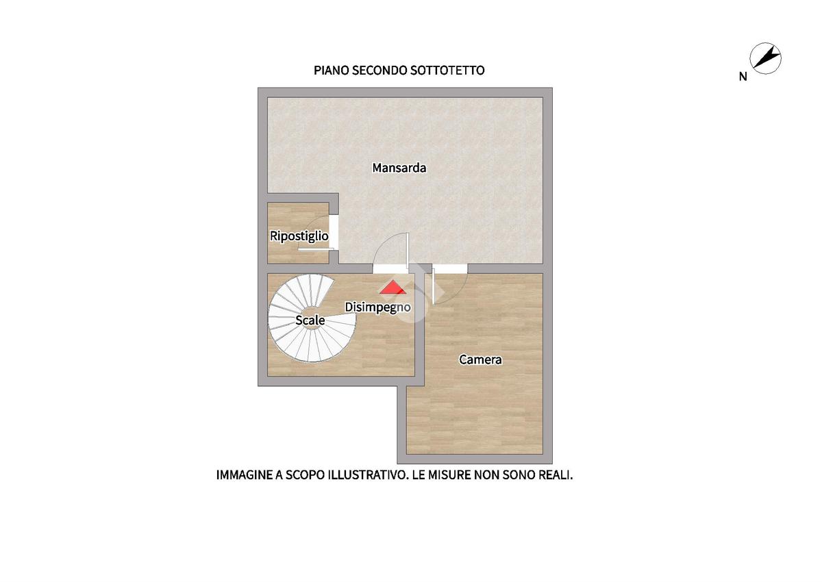 Al secondo e ultimo piano una mansarda con due ambienti, di cui uno adibito a camera da letto.