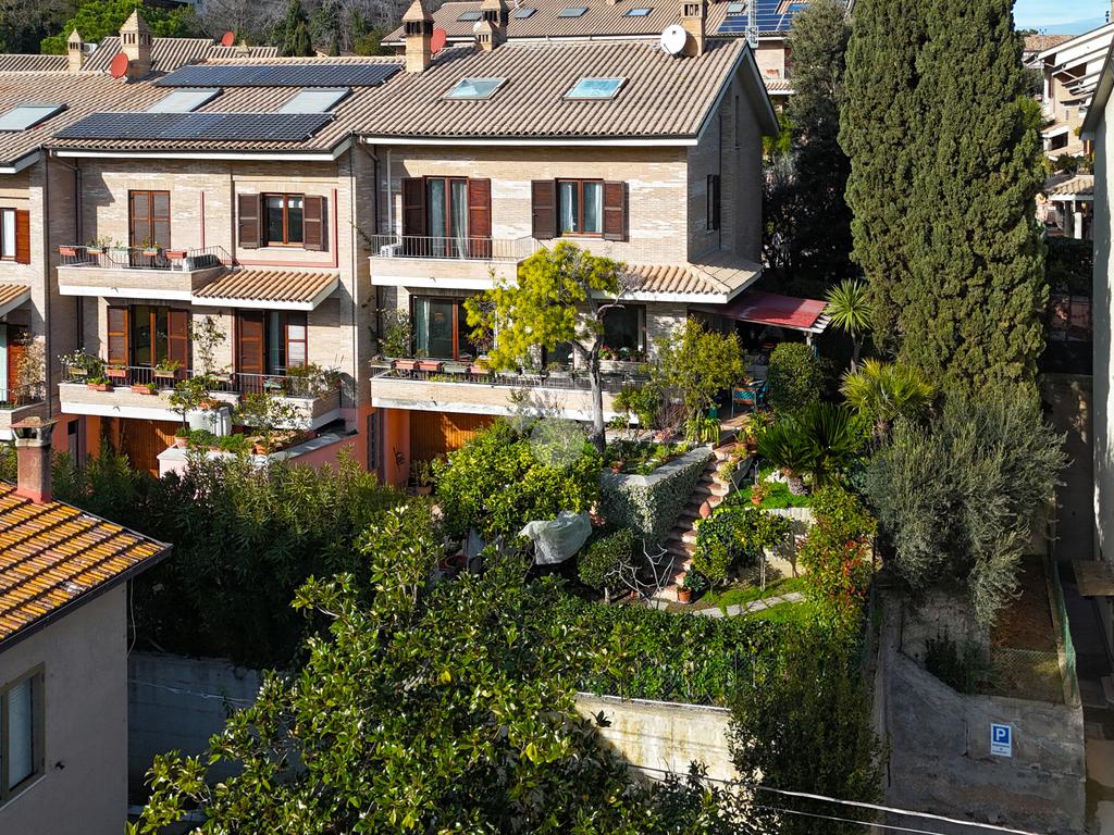 Porto San Giorgio: villa a schiera di ampia metratura, con corte privata perimetrale, su quattro livelli. Mansarda. Box auto.